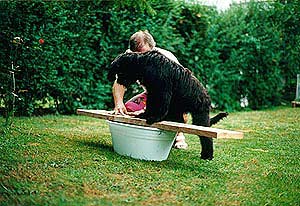 Der Briard braucht keine harte, aber eine absolut konsequente Hand und viel Abwechslung bei der Ausbildung. Wiederholungen sind ihm auf Dauer zu langweilig, er will seinen Kopf einsetzen müssen und braucht Aufgaben, die er lösen und bewältigen muß. Damit kommt man seinen natürlichen Eigenschaften als selbstständig agierender Hütehund entgegen. Wer seinem Briard viel Abwechslung und Beschäftigung bietet, ihm aber gleichzeitig zeigt wer im Rudel der "Boss" ist, was gerade bei Rüden ganz wichtig ist, der hat mit diesem Hund einen treuen, anhänglichen, intelligenten, verspielten und auch eleganten Begleiter.