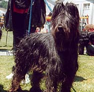 Der Briard ein langhaariger sehr selbständiger französischer Hirtenhund, kommt in den Farben schwarz (noir), blond (fauve) und grau (gris) vor. Er wird ziemlich groß: 55-70 cm und hat damit auch ein entsprechendes Gewicht, das "gehändelt" werden muß.